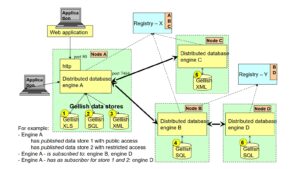 A Gellish messages can also be a Gellish query for data from a Gellish enabled database or it can be a response to a query in a dialogue. This can be in a one-to-one communication to query a single database, but it can also be in a peer to peer network of Gellish enabled applications in which a query is distributed to a number of ‘engines’ that have access to Gellish enabled databases or to a decentralized Gellish enabled distributed database.